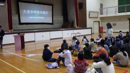 本日,久世中学校で「小6をむかえる日」がありました。久世西小学校から実際に歩き,ワクワクした様子で,友だちと楽しそうに談笑していました。久世中学校の行事やクラブを知り,中学校へのステップアップに期待感を膨らませることができました。