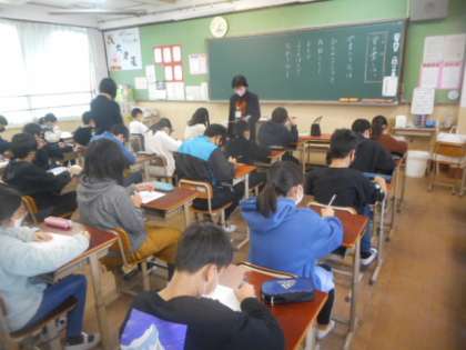 6日(火)、久世中学校で「小6を迎える日」が実施されました。1組は理科で葉脈標本作りをしました。葉脈をきれいに剥がし、色をつけ、最後はラミネート加工をして持って帰りました。2組は国語で百人一首の学習をしました。漢字のおさらいから始まり、中学校で学習する百人一首の入口の学習をしました。どの児童も集中して取り組んでいました。3組は数学の学習をしました。二人組で頭に浮かんだ3桁の数字を当てていくゲームです。頭を使いながらの頭脳戦を楽しんでいたようです。
