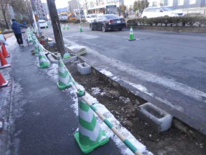 1枚目 雪の降る中の工事