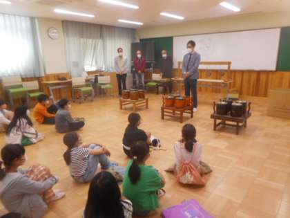今日から六斎クラブの活動がスタートしました。4年生も新たに加わりにぎやかにスタートしました。今年からは4年は4年生だけで、5・6年生は合同で練習することになりました。ご指導いただけるのは、地域の久世六斎保存会の3名の先生がたです。今年度もよろしくお願いいたします。