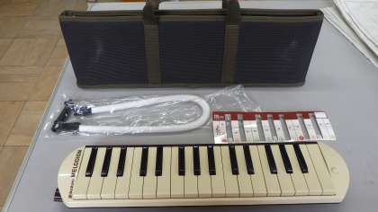 写真の鍵盤ハーモニカは、布の袋なので軽いです。