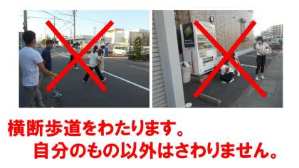 ・大きな通りを信号や横断歩道のないところはわたりません。