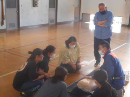 9日(火)、南消防署の方に来ていただき普通救命の実技講習会を行いました。本校の教職員が参加しました。6月から始まる水泳指導を前に、万が一に備えて、心肺蘇生法・AED(自動対外式除細動器)の使い方などの研修を行いました。安全に対する意識や技能を高めました。