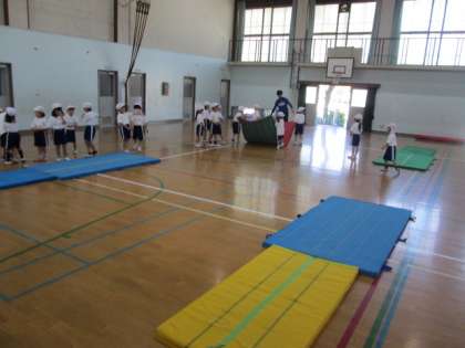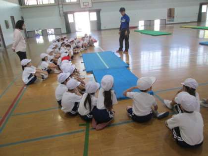 準備の仕方や片付け、マット遊びでのお約束を学びました。