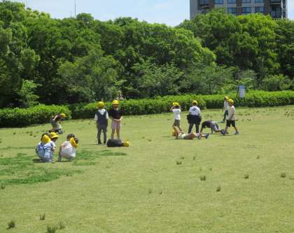 梅小路公園では、芝生で寝転んだり、鬼ごっこをしたりと、おもいおもいに過ごしていました。