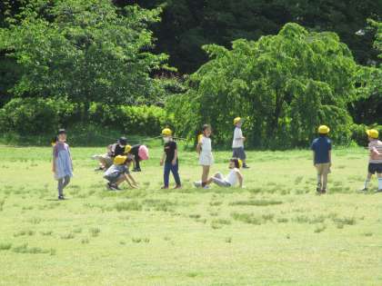 寝転がってころころ転がって、「転がりおにごっこ」という遊びを考えた人もいました。それぞれの公園での楽しみ方を見つけることができました。