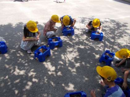 土を入れて,あさがおさんのふかふかのベットをつくりました。