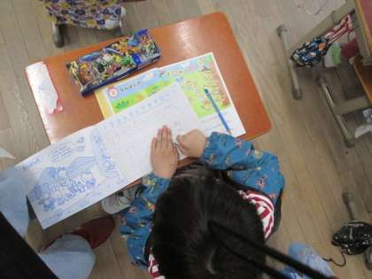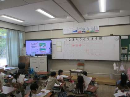子どもたちは教科書に載っている可愛いイラストを見ながら、「右から何番目」や「上から何番目」という言い方を学習しました。