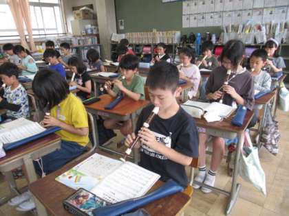 音楽の学習では、鍵盤ハーモニカやリコーダーを使って演奏しています。