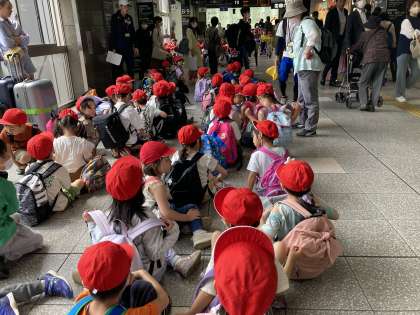 ホームでも、車内でも、マナーよくすごしています。さすが、久世西小学校の1年生。