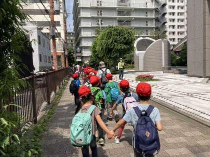 しっかり見て、しっかり聞いて、はぐれないように公園まで歩きます。