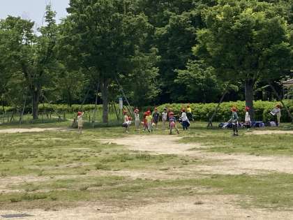 芝生広場では、グループで楽しく遊んでいます。