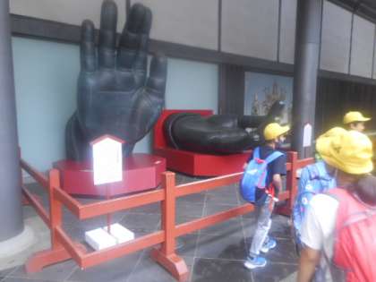 大仏様の手のレプリカもありました。しおりに書いてあった問題の答えもこれで分かりました。