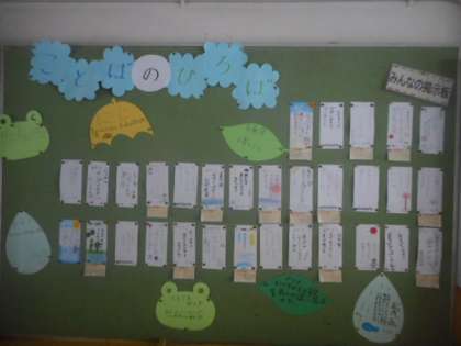 職員室前の掲示板に夏の俳句が張り出されました。応募してくれたみなさん、どうもありがとう。5・6年生の委員会の人たちや先生たちから「いいね」や「すきです」のカードが貼られています。また、みてください。次回もみなさんからの素敵な俳句を楽しみにしています。