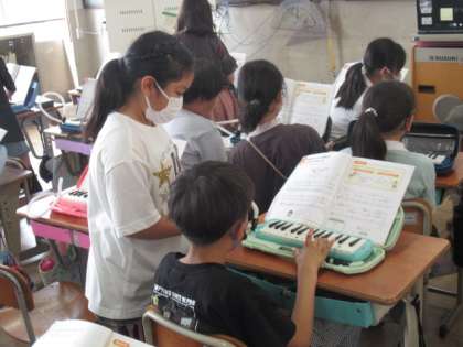 初めて演奏する曲で、初めは指かえに戸惑う子もいましたが、何度も繰り返し練習していく中で、上手に演奏できるようになってきました。