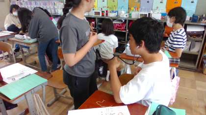 理科「体のつくりとはたらき」では、酸素が体の中を運ばれるしくみを色々な方法で調べました。タブレットで調べたり、自分や友だちのはく動数や脈拍数を調べたりしました。人によって違いがあったようで、結果を交流しながら学習することができました。