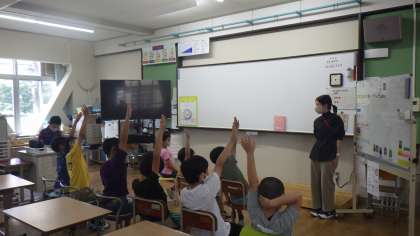 朝の会でも今日の日付や流れを確認しています。わかることや自分の意見は積極的に発表する習慣がついてきています。