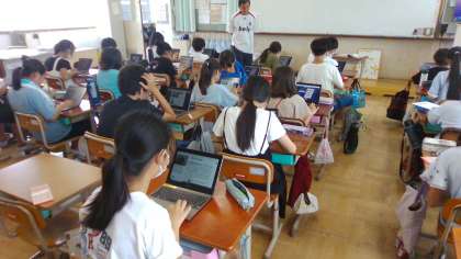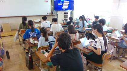 社会科「天皇中心の国づくり」では、教科書をもとに大化の改新について誰がどんな目的で行ったかロイロノートを使ってまとめました。