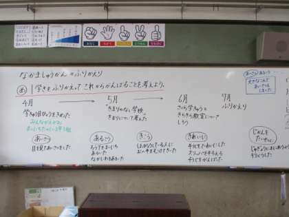 「大きな声であいさつできるように頑張った」「2学期ではスリッパをもっときれいに揃えられるように頑張る」「教室をピカピカにするぞ」など、様々な感想を持ち,自身を振り返れたようです。