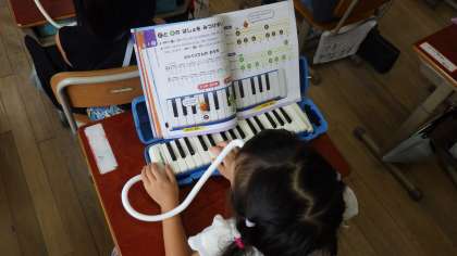 先週から音楽の授業で鍵盤ハーモニカを使い、学習を進めました。