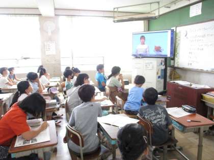 学活の時間には、夏休みの課題にもなっている「エコライフチャレンジ」について学習をしました。