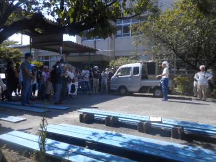 大変暑い中でしたが、朝早くからたくさんの方に参集していただきました。このカエル描きは、およそ50年ほど続く久世学区独自の取組です。昨年度は、テレビや新聞、インターネットで取り上げられ、久世学区の取組を広く皆さんに知っていただくきました。