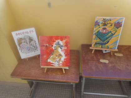 2年生の踊り場です。夏休み明けには、戦争に関係する本が置いてありました。
