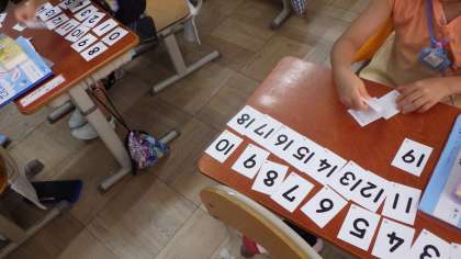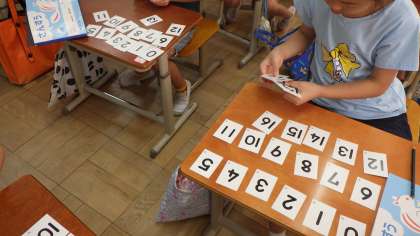 1から20まで順にどのように数字が変わっているのか。また数カードを使い、数の大きさを順に並べ学習しました。