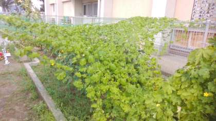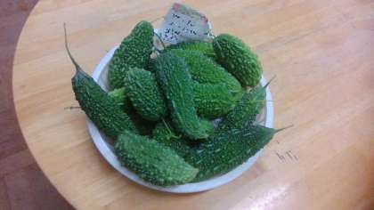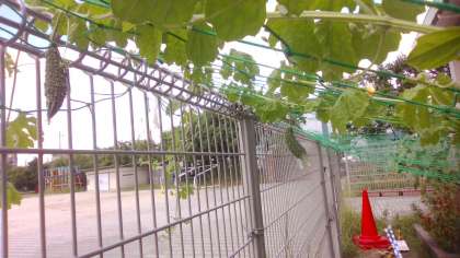 夏も終わりになりましたが、4年生の花壇のツルレイシはまだまだ育っています。今日も10個以上の実を収穫しました。
