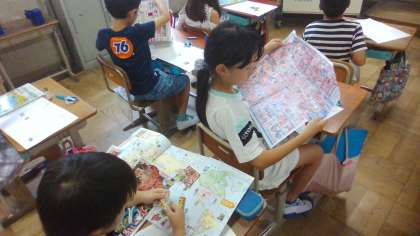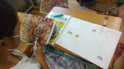 スーパーのチラシを使って、生産地調べをしました。