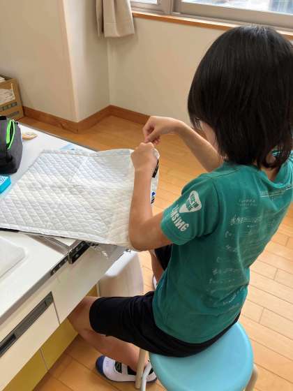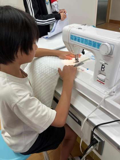 家庭科では、トートバックの制作が始まりました。学習したことをもとに、自分で選んだトートバックの生地をミシンで縫ったりアイロンをしたりしています。出来上がりが楽しみです。