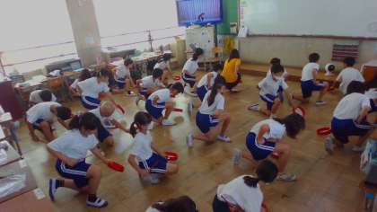 スポーツDAYに向けてエイサーの練習をしました。