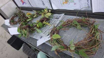 13日(水)は2組があさがおのつるを使い、リースを作りました。