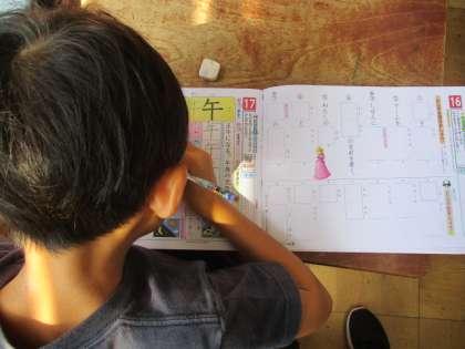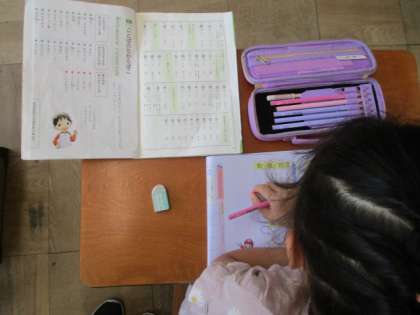 漢字の練習を進めています。「国」や「算」など、身の回りで使われている漢字がたくさん使えるようになってきました。下敷きをひいて、丁寧な字で書けるよう、頑張っています。