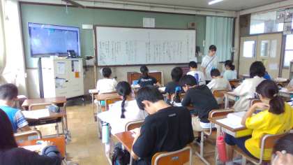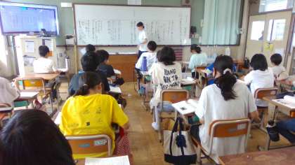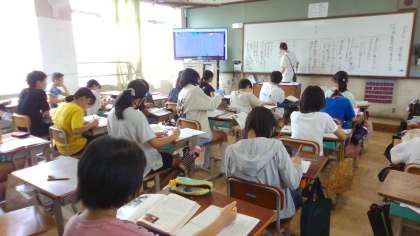 国語科「やまなし」では、イーハトーブの夢を読んで、宮沢賢治の考え方を探っています。今日の学習では、出来事をノートに整理し、それを全体で交流しました。