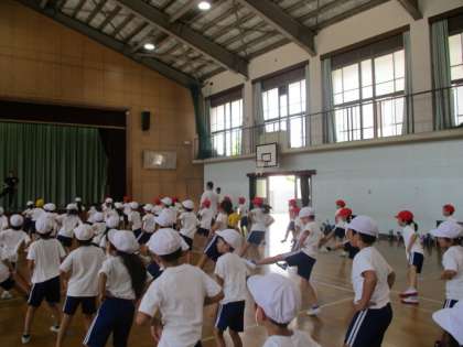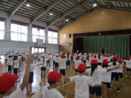 スポーツDAYに向けて、学年でのダンスの練習が始まりました。こまめな水分補給と涼しい風に当たりながら、頑張って練習しています。少しずつ振り付けを覚え、やる気満々の子どもたちがとても可愛らしいです。