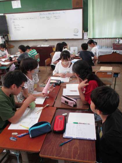 これまでの学習をもとに条件を変えながらグループで熱心に話し合う姿が見られていました。