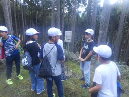 午後の活動はスコアオリエンテーリングです。みんなで問題を解きながら、山の家の所内をラリーして楽しみました。途中「ヤッホー」とやまびこを楽しむグループがあったり、「あ、虫みつけた」「そら自然やもん」と自然に親しんだりするグループがありました。