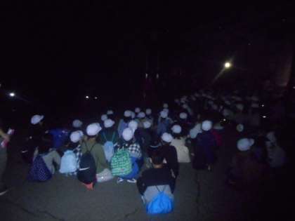班ごとに夜の道を散策しました。肝試しではなく、夜空を見上げたり、虫の声を聴いたりしながら歩きました。夜の風もとても涼しく、わたしたちが暮らす南区とはずいぶん気温の差を感じます。