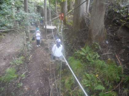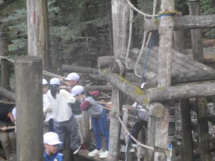ゴシ谷ハイクが予定より早く終わったので、冒険の森を使わせていただきました。自然の形を利用したアスレチックに、子どもたちは夢中でした。