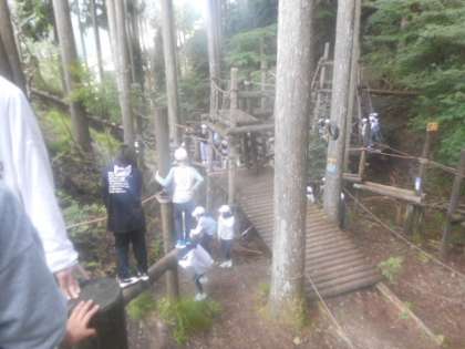 野猿があったり、ターザンロープもあったりして子どもたちは思い思いに遊んでいました。