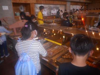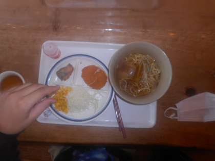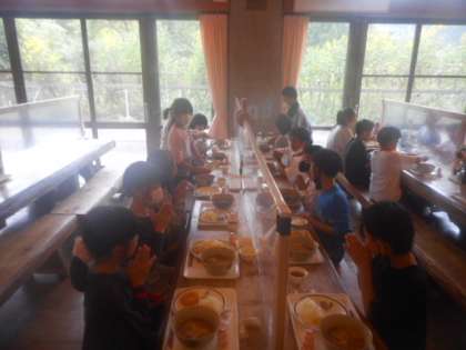 ずいぶん食堂の使い方に慣れてきた子どもたち。今日のお昼ご飯はラーメンとバイキングです。バランスの良い食事をとりましょう。