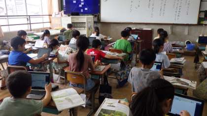 国語の学習では、図鑑や科学読み物を読んで、初めて知ったことを友達に伝えるための準備をしています。