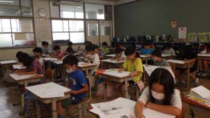 アイデアスケッチや図書室で借りた本を参考に、画用紙に大きく描いていきました。