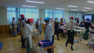 給食試食の際には、実際に食器やおかずを給食室から運んだり、給食の配膳を体験していただきました。小学生・中学生以来の給食という方もたくさんおられました。