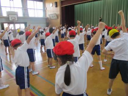 スポーツDAYで披露するリズムダンスの学年練習です。ポーズも動きも、練習を重ねるごとにメキメキと上達していきます。音楽を口ずさみながら踊る人もおり、楽しくダンスの練習を行うことができました。