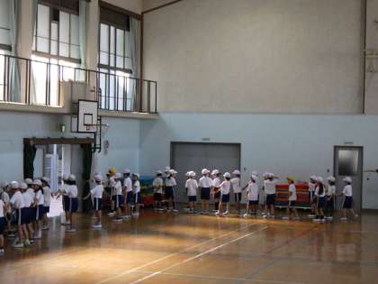 それぞれのクラスに分かれて、並び方や隊形移動の仕方を確認し、決めていきました。