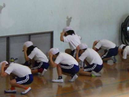 今週は、運動場で自分の立つ位置を確かめたり、友達との間隔を確かめたりしながら練習を進めていきます。