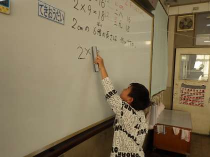 その中で、「2の段の九九は、答えが2ずつ増えていく。」ことに気付くことができました。これから、5の段とあわせて2の段も少しずつおぼえていきます。