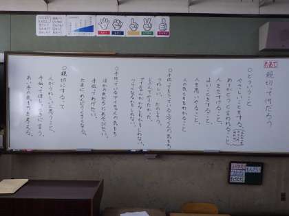 手伝ってもらっているユウくんの気持ちと、手伝っているアイちゃんの気持ちを対比して考えながら、「親切にする」とは、どういうことなのか考えました。